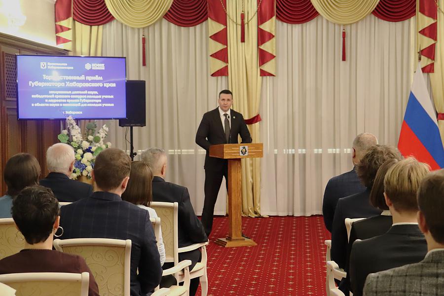 В Хабаровске состоялся торжественный приём заслуженных деятелей науки, победителей краевого конкурса молодых учёных и лауреатов премии губернатора в области науки и инноваций для молодых учёных. В мероприятии, приуроченном ко Дню российской науки, приняли участие представители научного сообщества региона разных поколений.