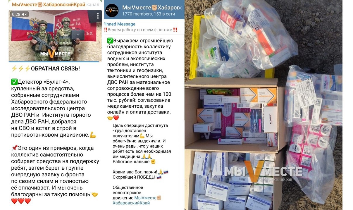 Отметим, что Хабаровский Федеральный исследовательский центр ДВО РАН принимает активное участие в мероприятиях по поддержке специальной военной операции. Всего с начала СВО неравнодушные сотрудники собрали гуманитарную помощь на сумму 1 млн 300 тыс. руб.