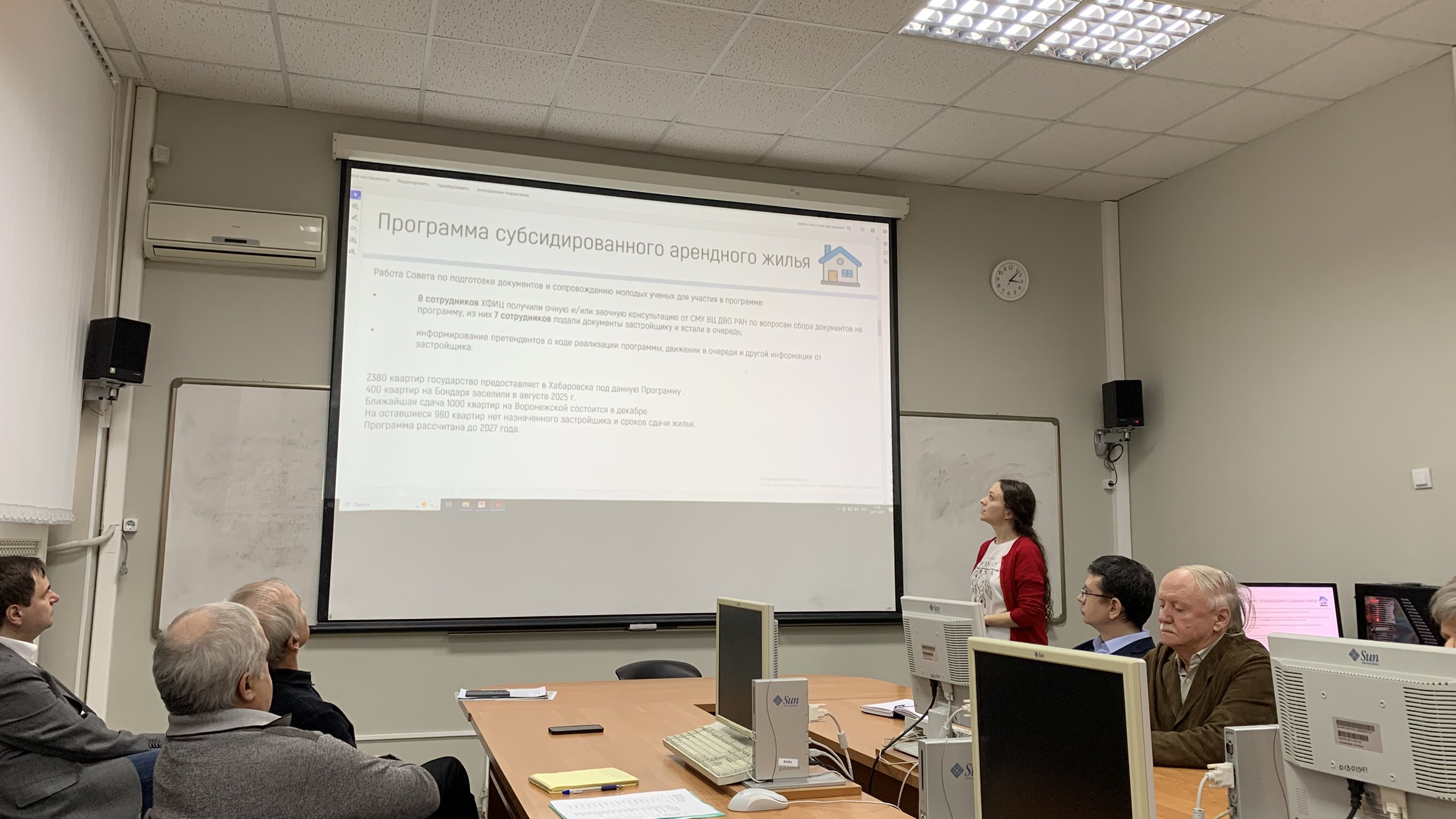 Также с докладом о работе Совета молодых ученых ВЦ ДВО РАН в 2025 г. выступила председатель СМУ Ксения Сергеевна Королёва. Она рассказала, что в отчетный период был избран новый состав СМУ, актуализированы положение и иные регламентирующие документы. В интересах молодых учёных и специалистов Хабаровского Федерального исследовательского центра ДВО РАН проведена значительная работа по сопровождению заявок на получение арендного жилья и жилищных сертификатов. Члены СМУ активно участвовали в организации конференции ITHPC-2025 и хакатона «ScienceDataLab 2025». В ближайших планах СМУ – проведение семинаров по подготовке заявок на гранты, работе с информационно-библиотечными ресурсами и другим актуальным темам.